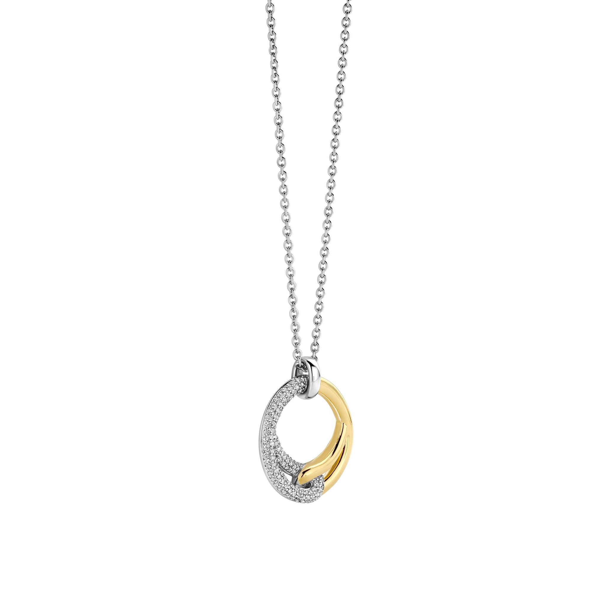 TI SENTO MILANO 34107ZY/42 Zilver gerhodineerd collier met hanger, twee open lussen in elkaar met pavé zirconia's