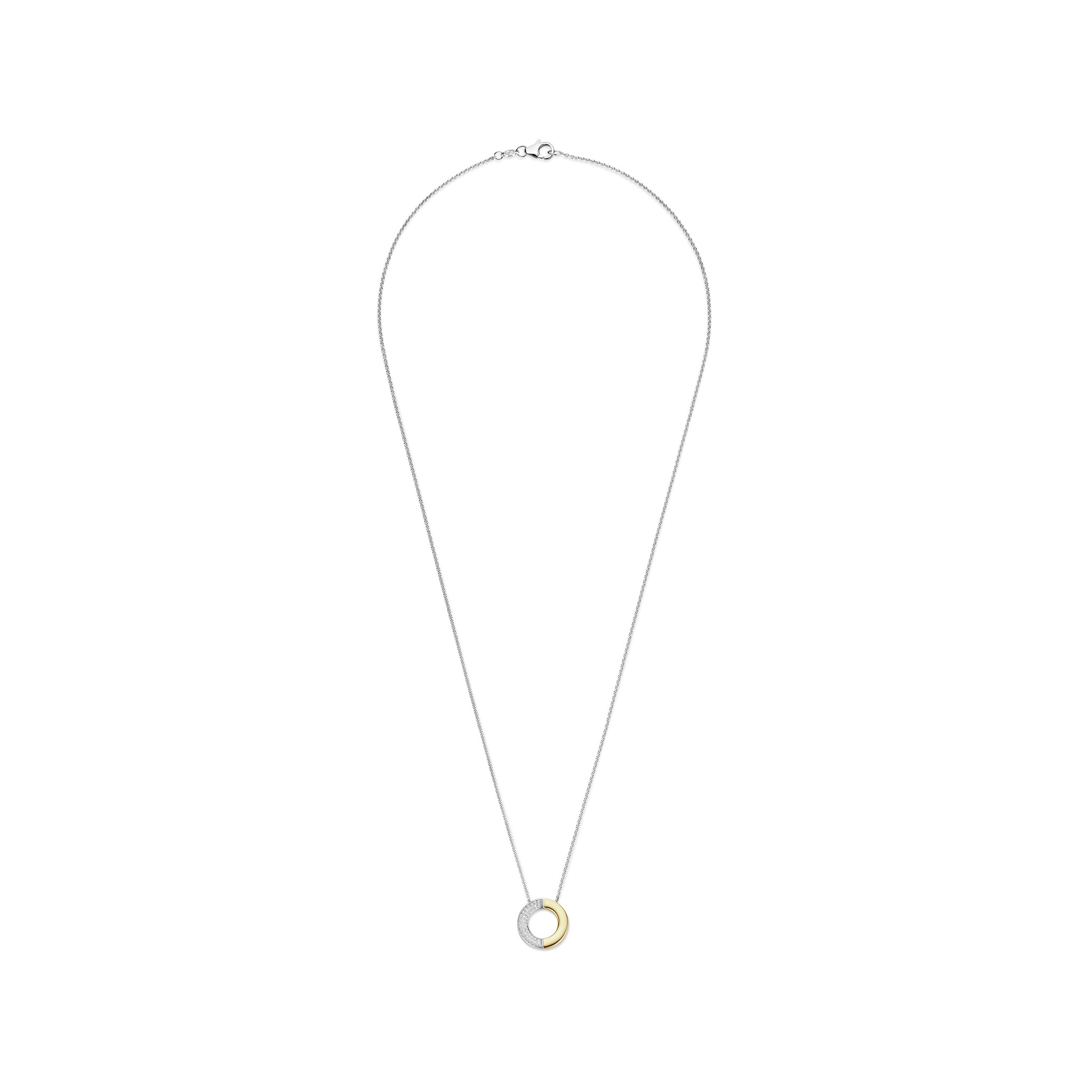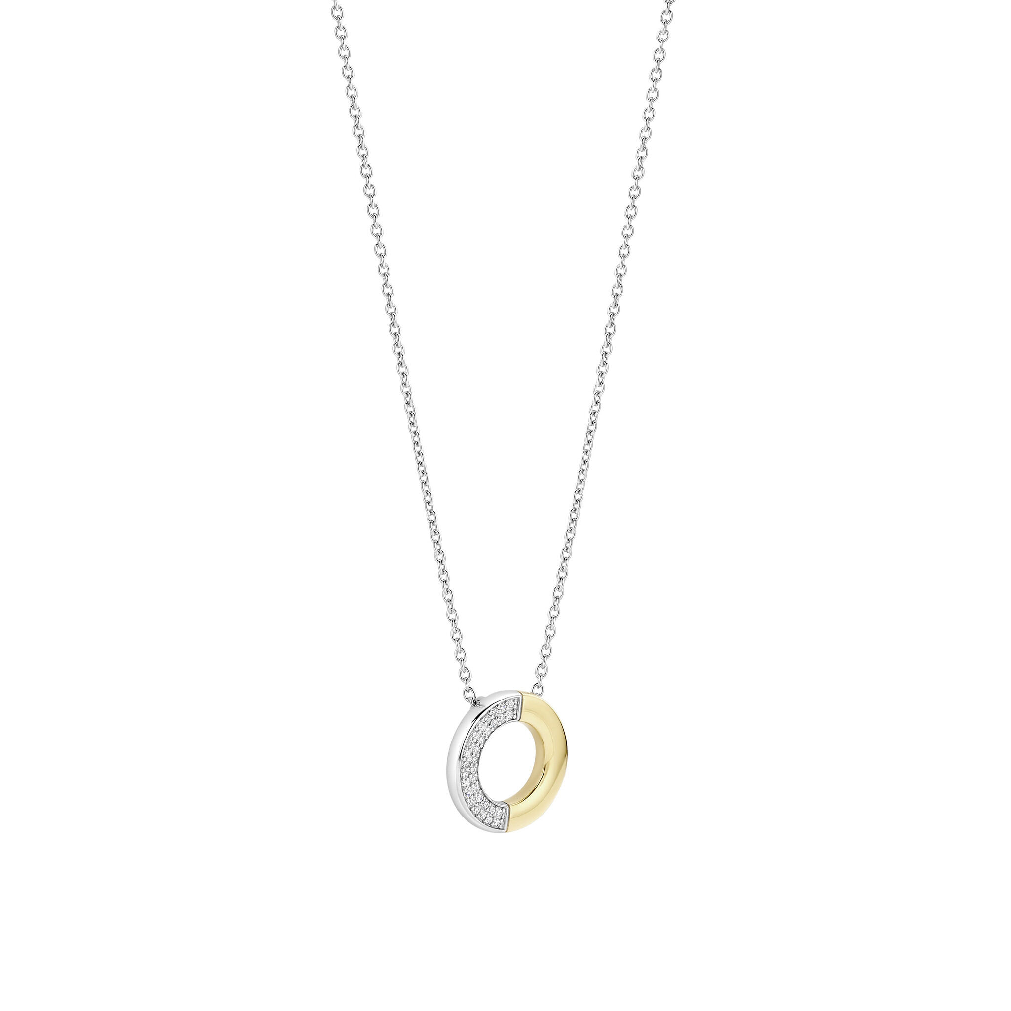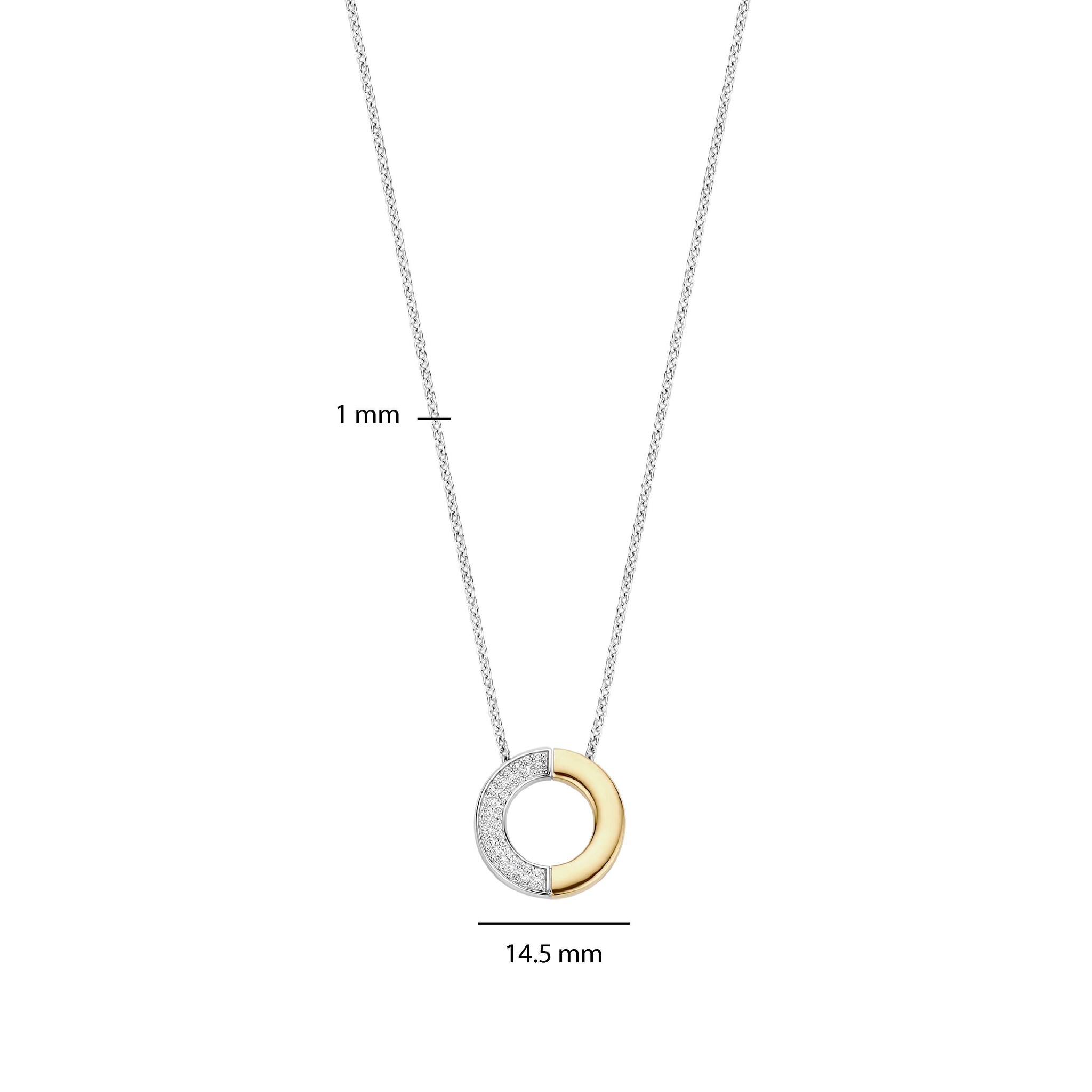 TI SENTO MILANO 34120ZY/42 Zilver gerhodineerd collier met hanger, open rondje met verguld en zirconia's, 42 cm