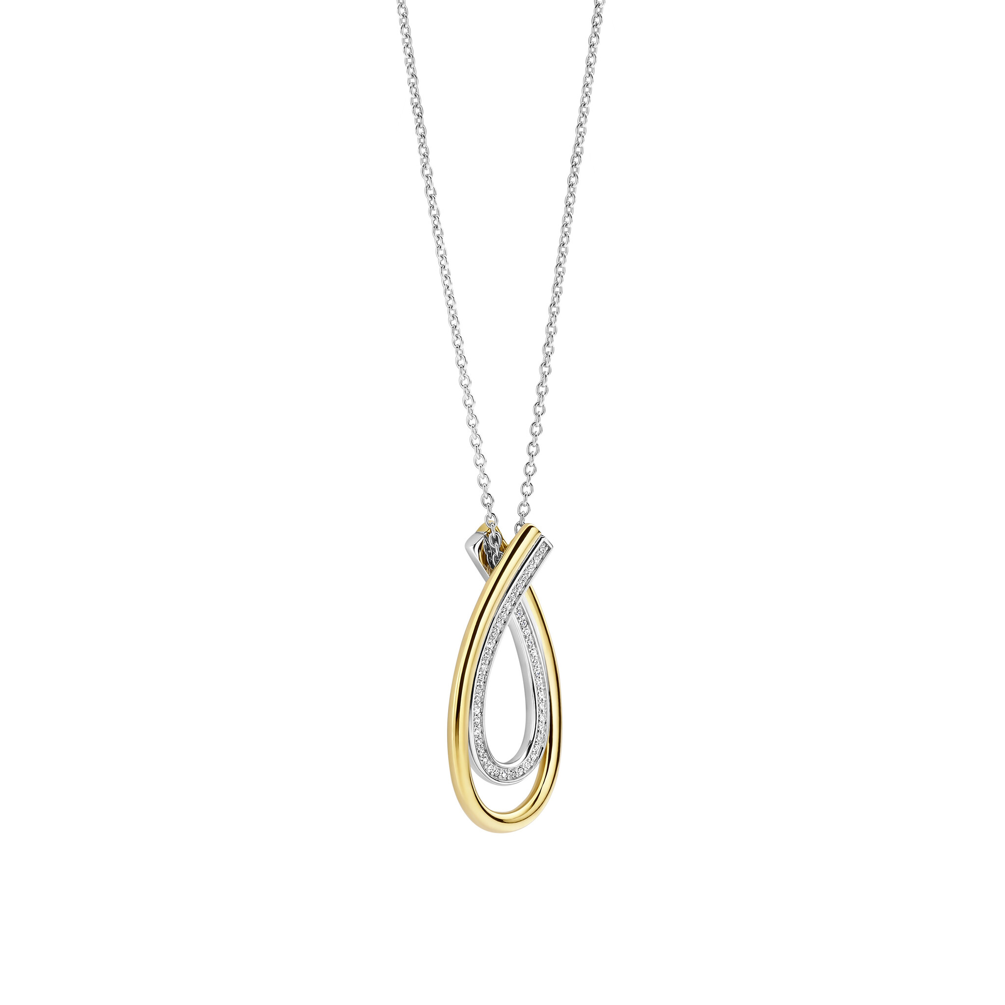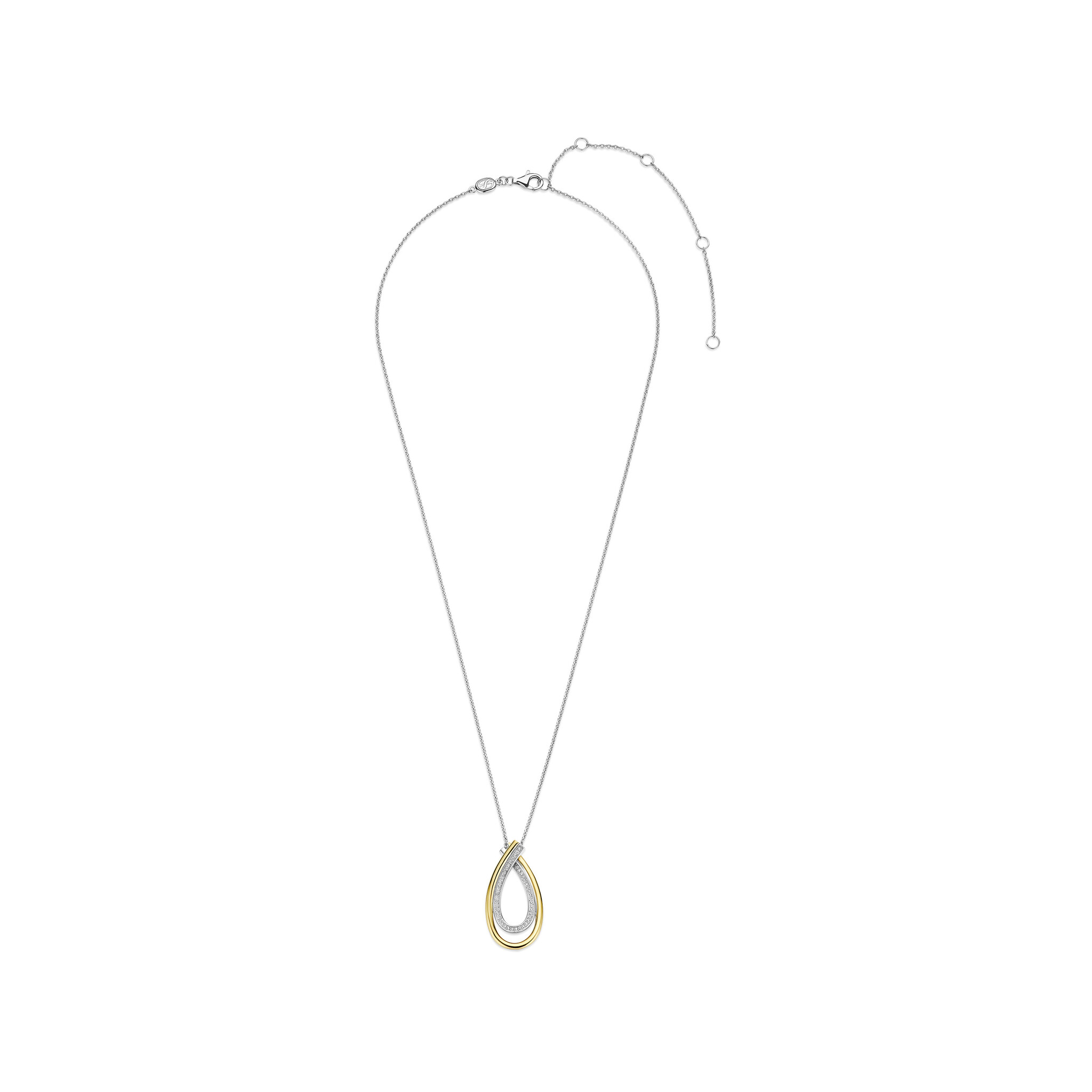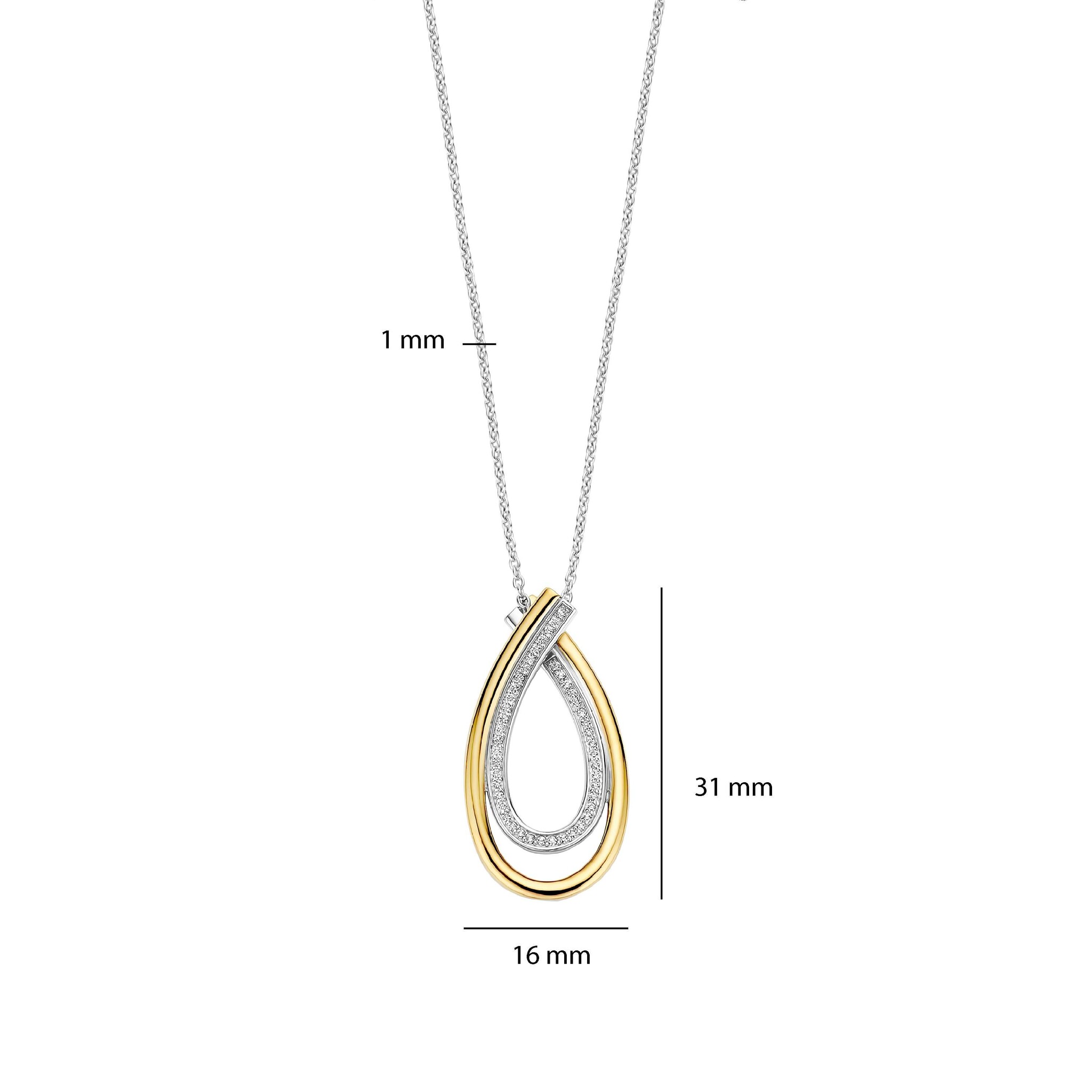 TI SENTO MILANO 34121ZY Zilver gerhodineerd collier met ovale open hanger, druppelvorm, verguld en zirconia's. 45 cm