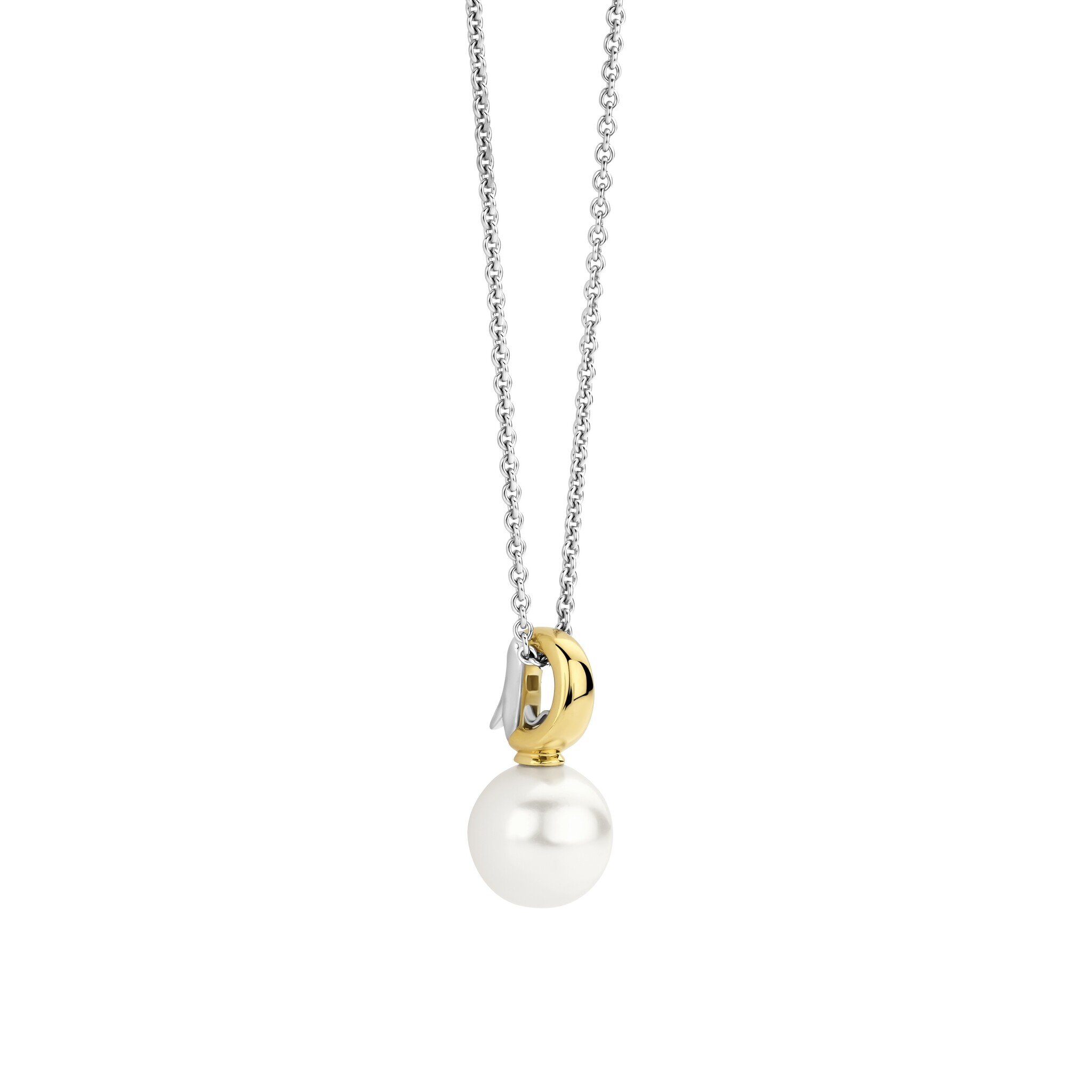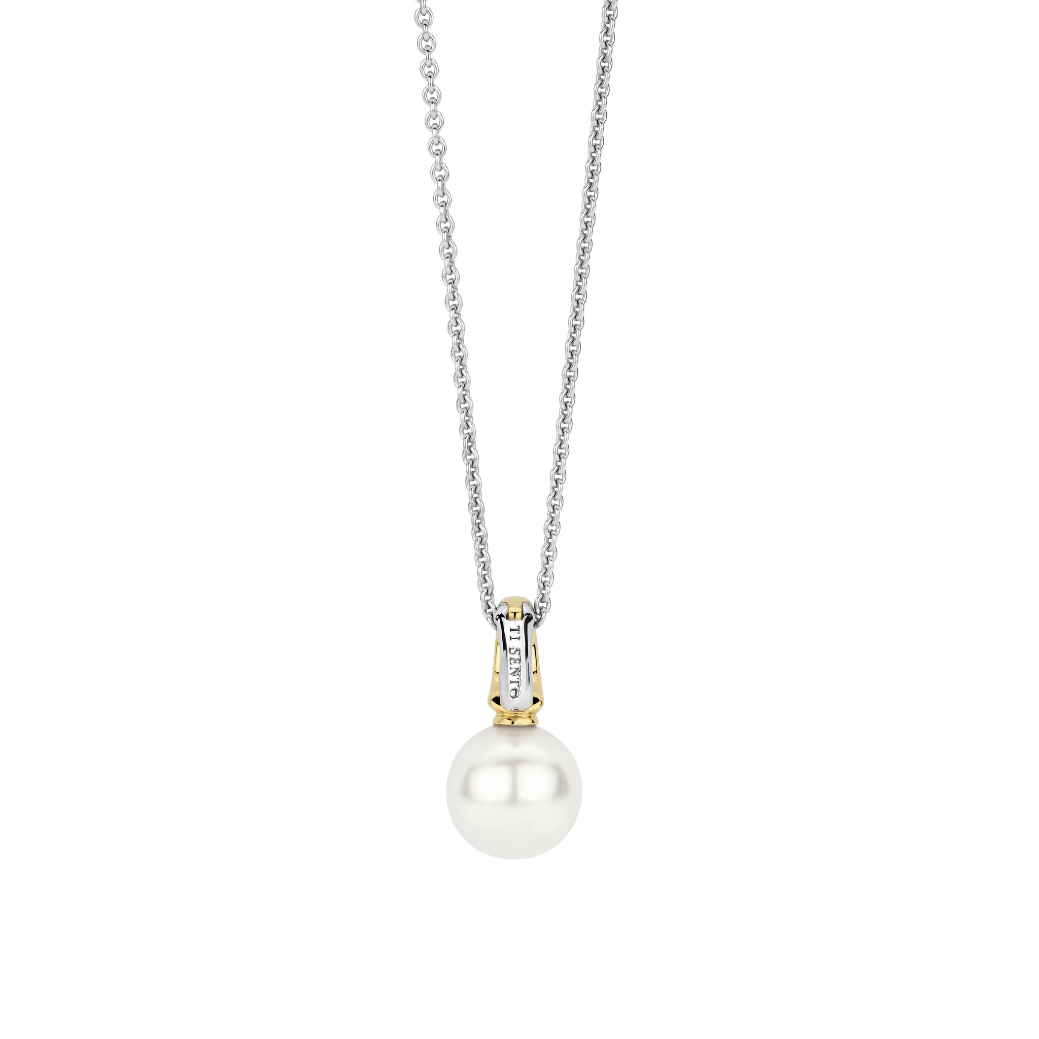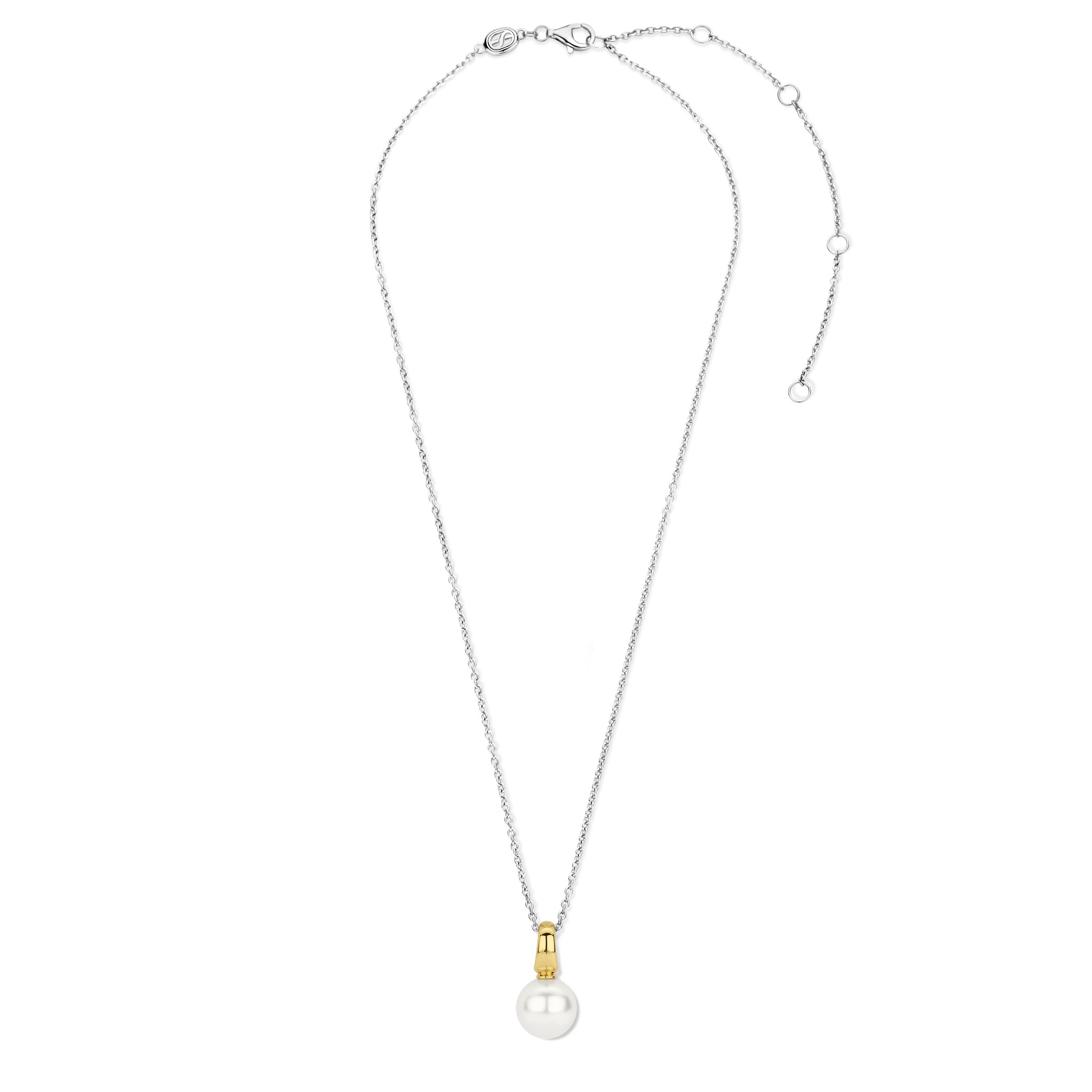 TI SENTO MILANO 6835YP Zilver vergulde cliphanger, witte imitatieparel 8 mm (incl fijn collier)