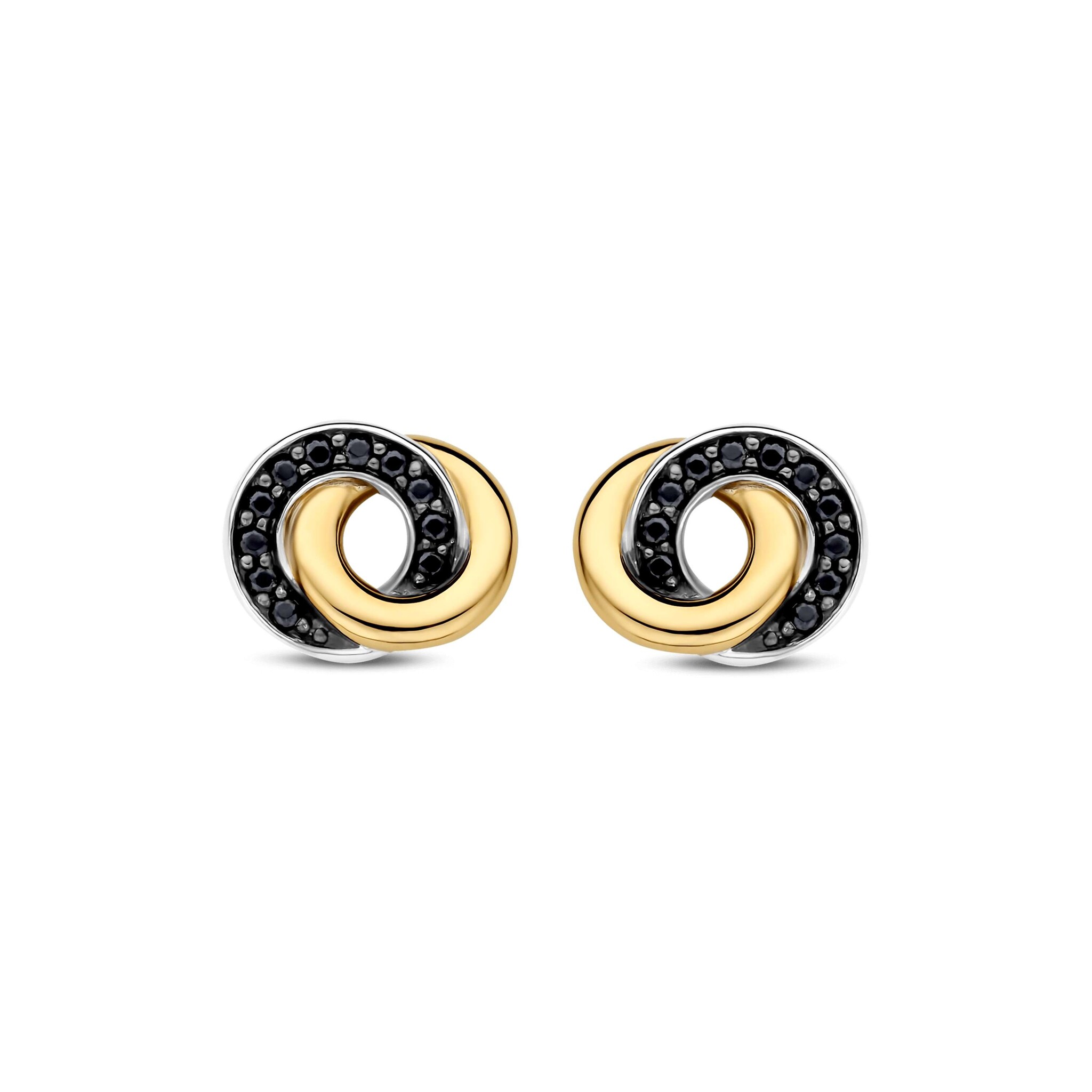 TI SENTO MILANO 7784BY Zilver gerhodineerd met vergulde oorknoppen, 2 rondjes in elkaar, met zwarte zirconia's