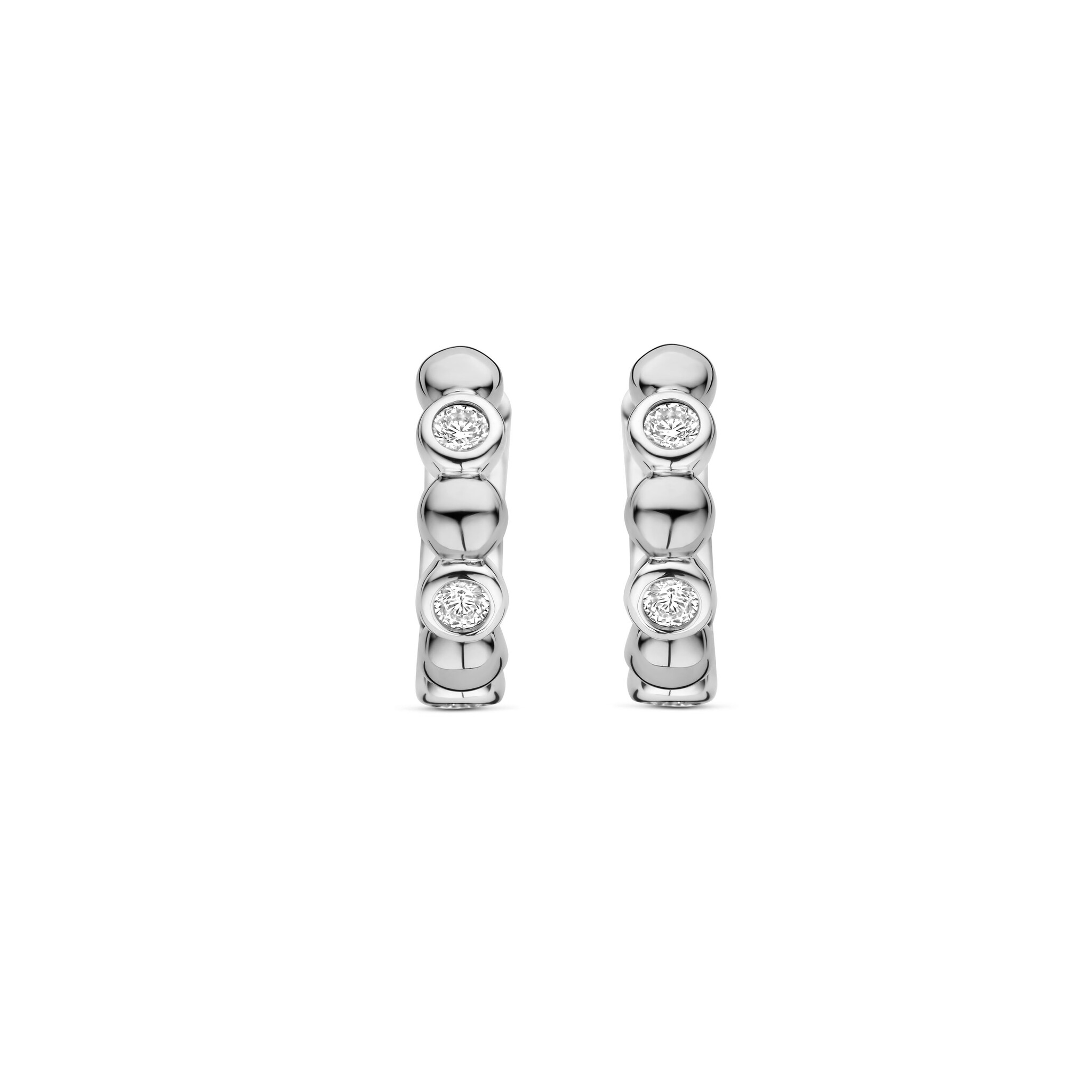 TI SENTO MILANO 78008ZI Zilver gerhodineerde klapcreolen 15mm, met bolletjes en ronde zirconia's
