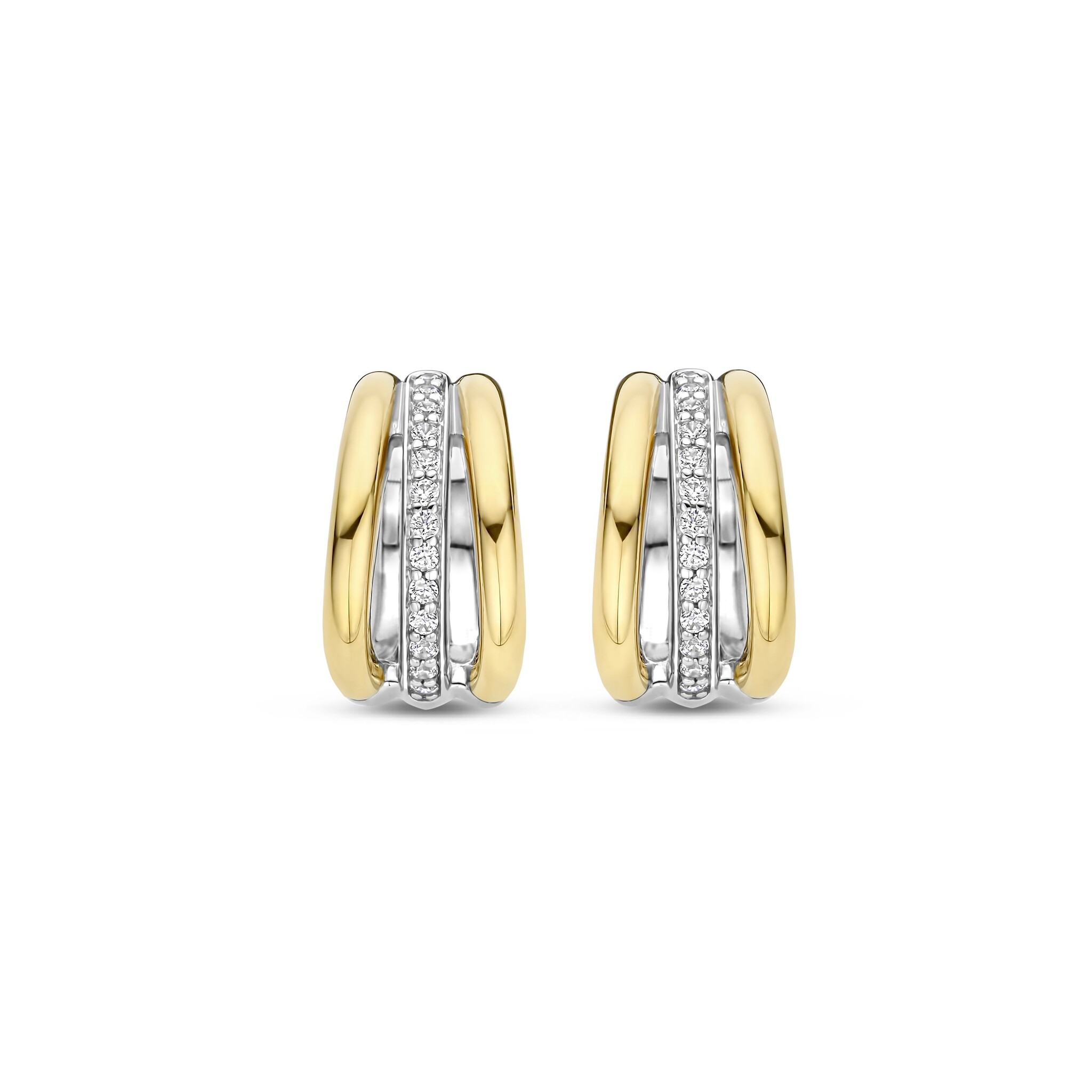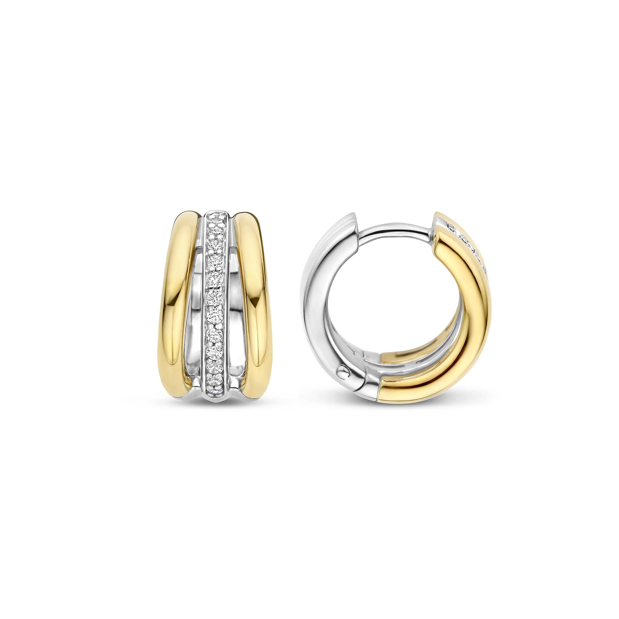 TI SENTO MILANO 78010ZY Zilver gerhodineerde klapcreolen, open 3-baans met verguld en zirconia's