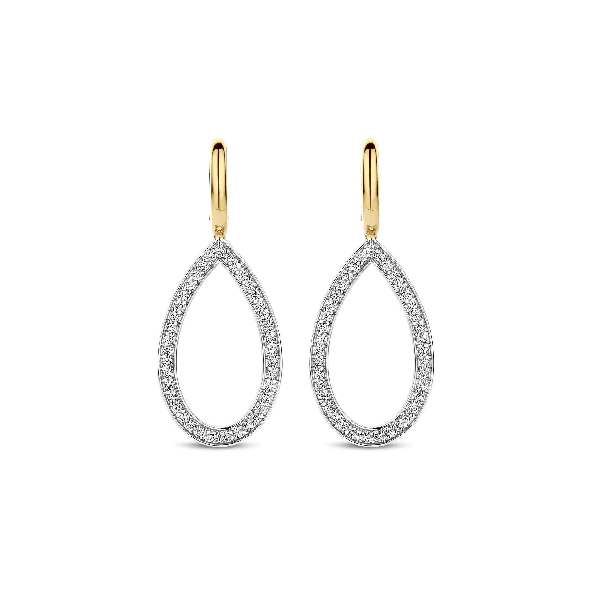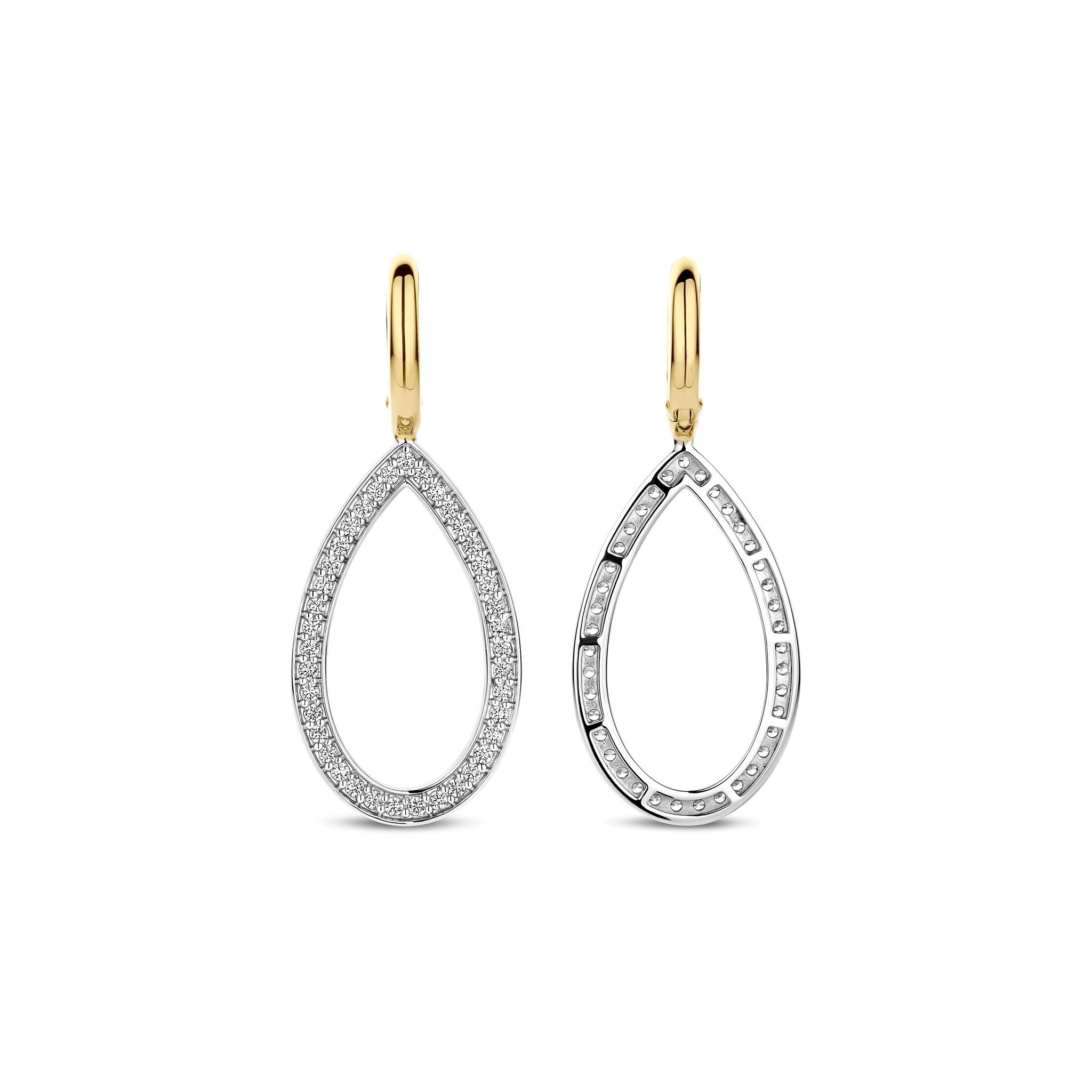 TI SENTO MILANO 78039ZY Zilver gerhodineerde klapcreolen, verguld, open druppelvorm met rand zirconia's