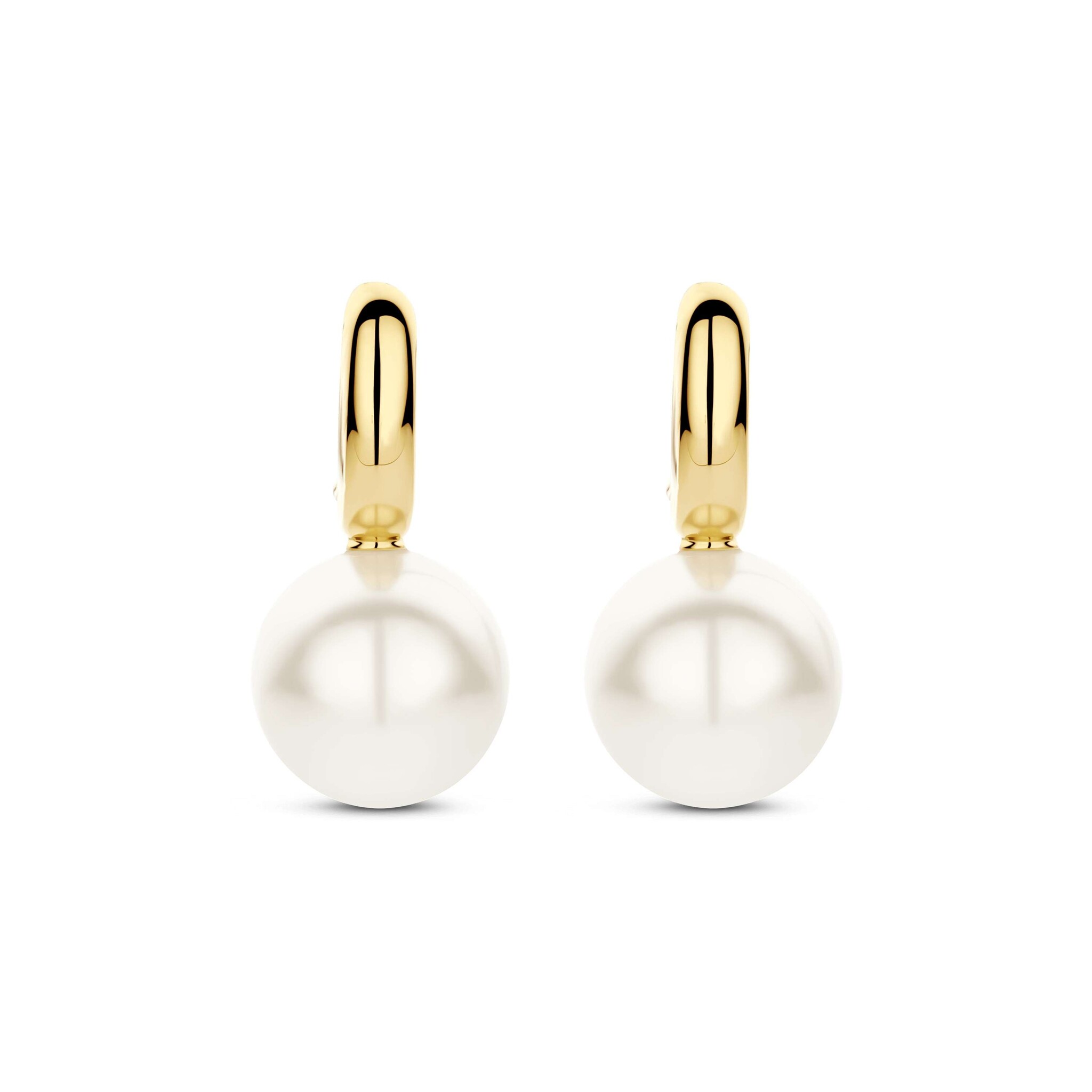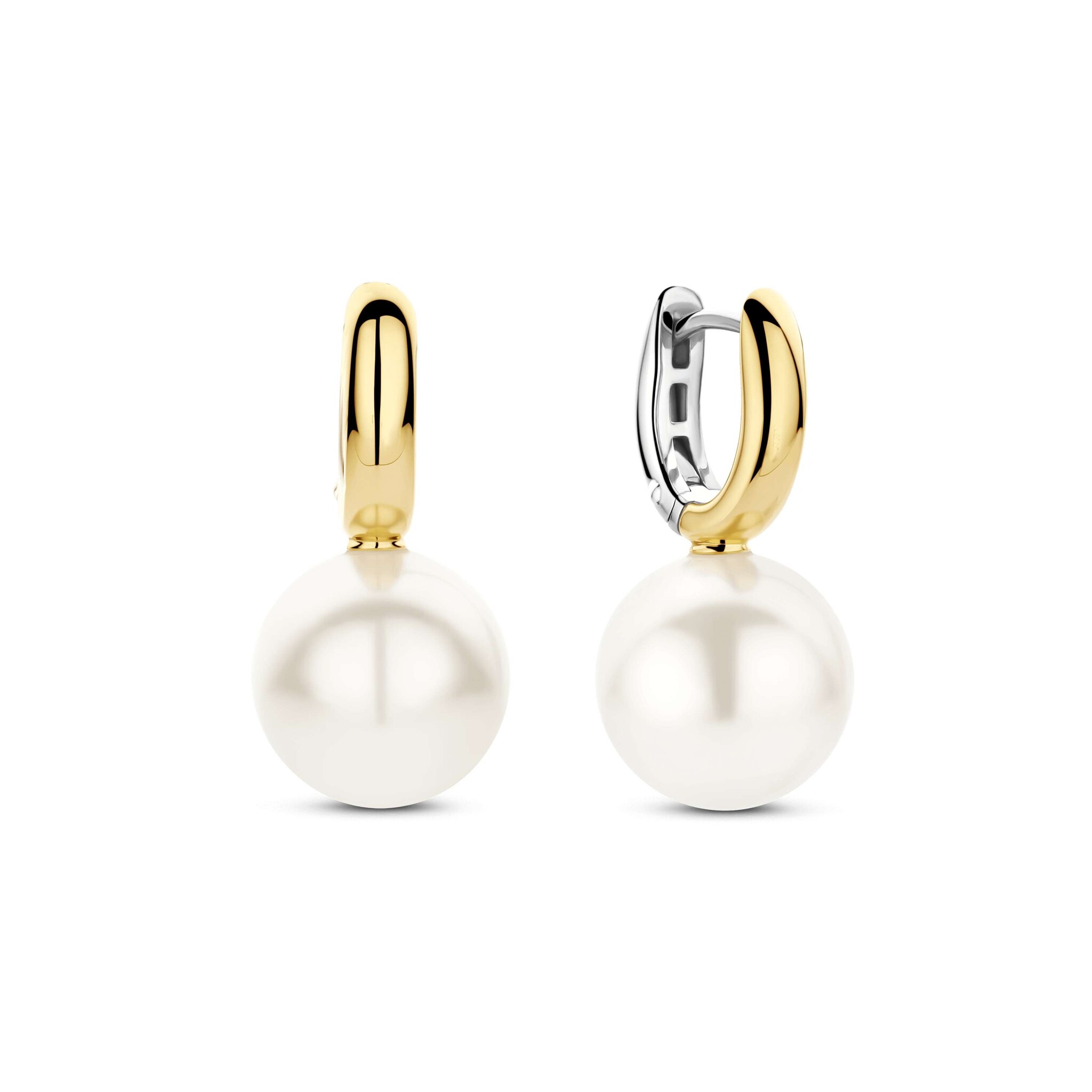 TI SENTO MILANO 78044YP Zilver vergulde ovale klapcreolen met vaste hanger, witte parel 10 mm