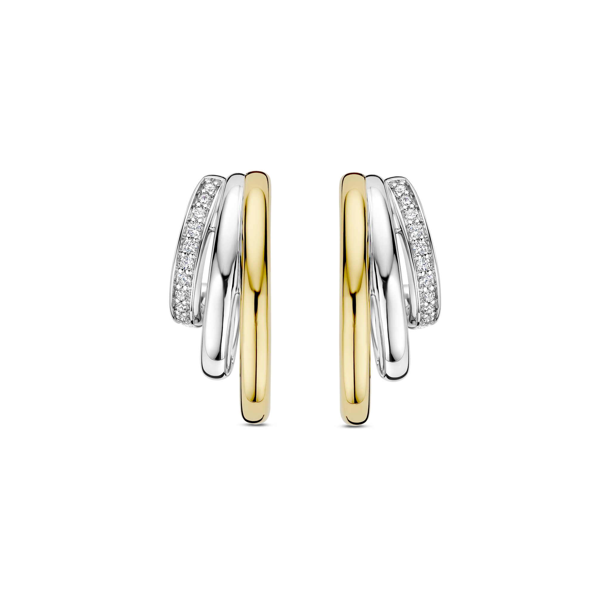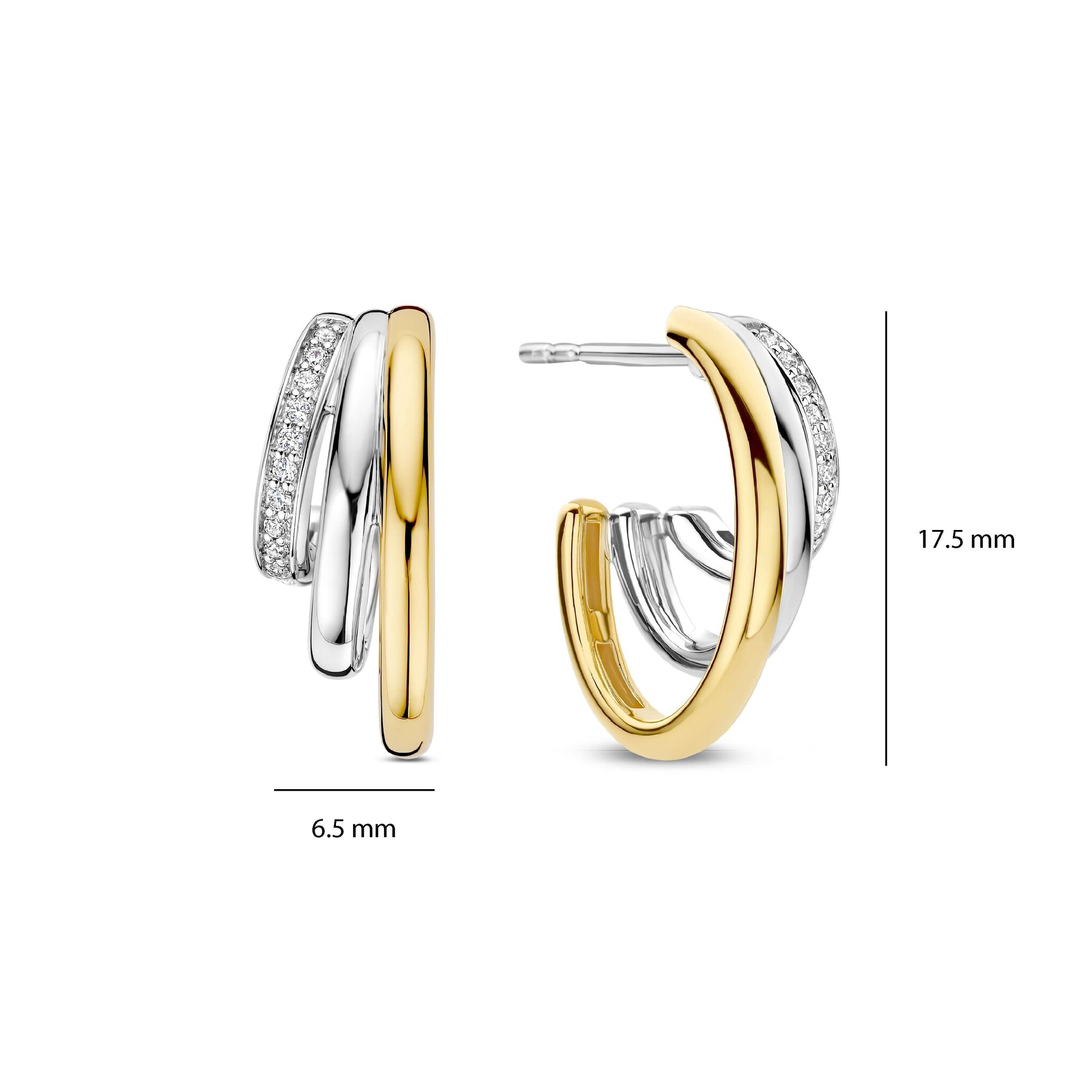 TI SENTO MILANO 78068ZY Zilver vergulde halfronde oorstekers, 3-baans aflopend met verguld en zirconia's