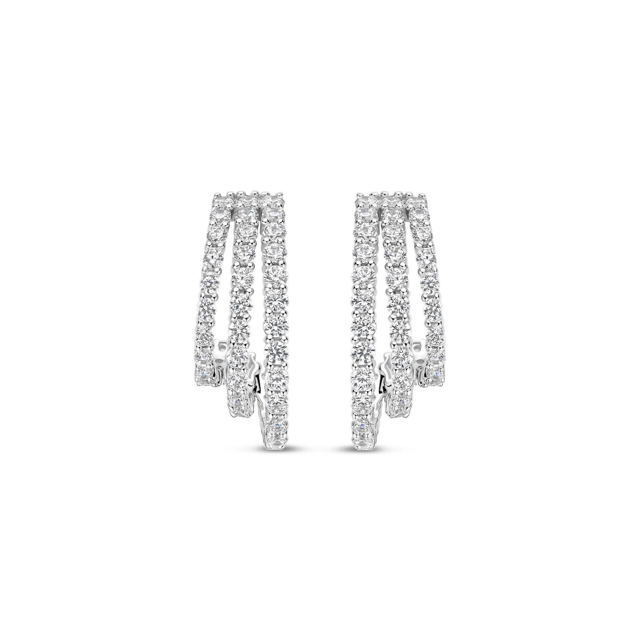 TI SENTO MILANO 78069ZI Zilver gerhodineerde stekercreolen, open 3 baans met geheel zirconia's