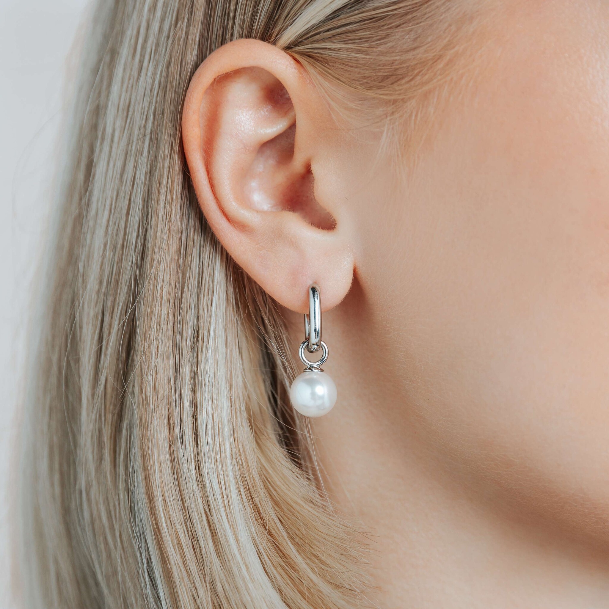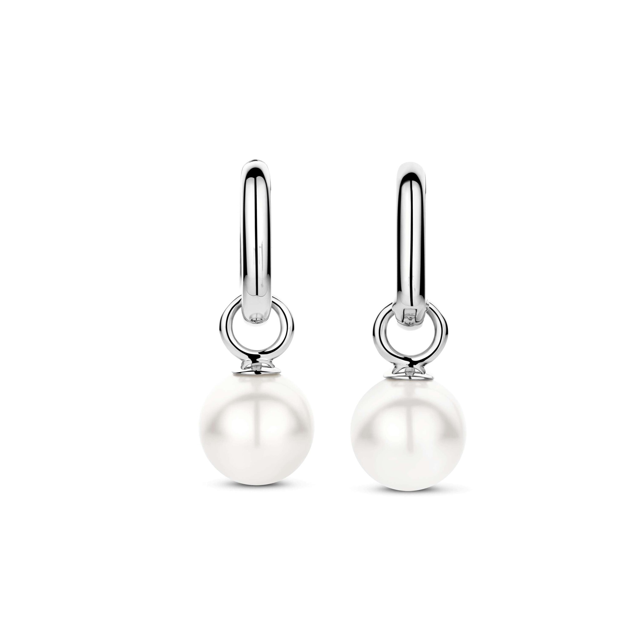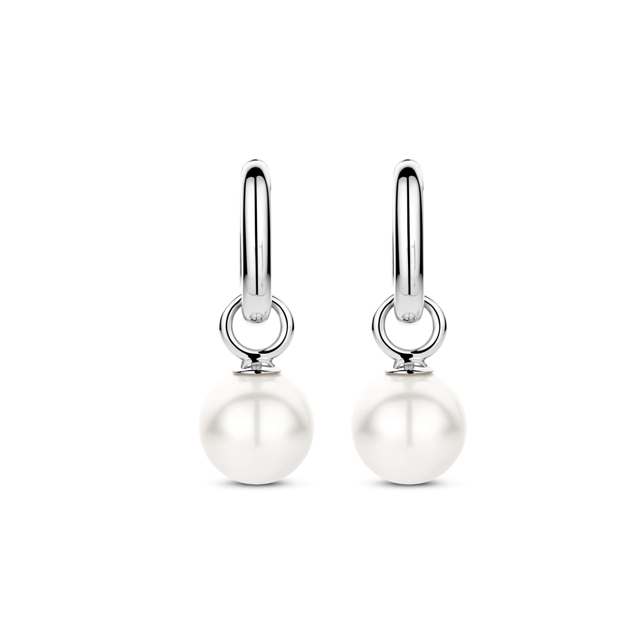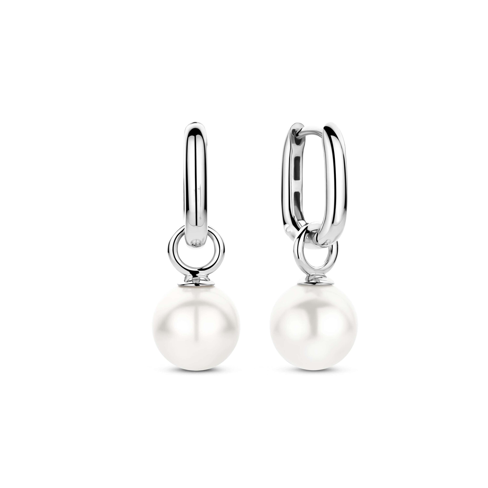 TI SENTO MILANO 7848WP Zilver gerhodineerde ovale klapcreolen, met oorbedels witte parel 10 mm