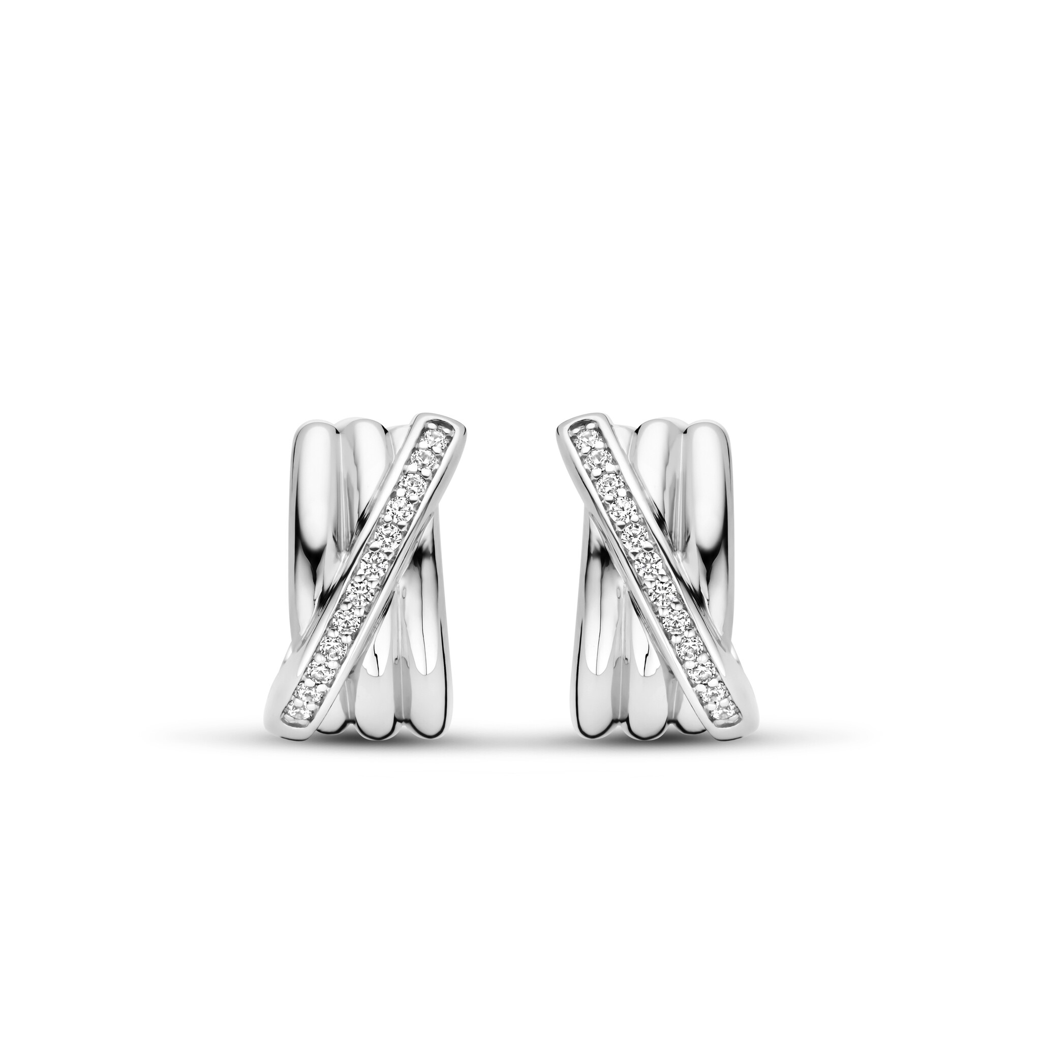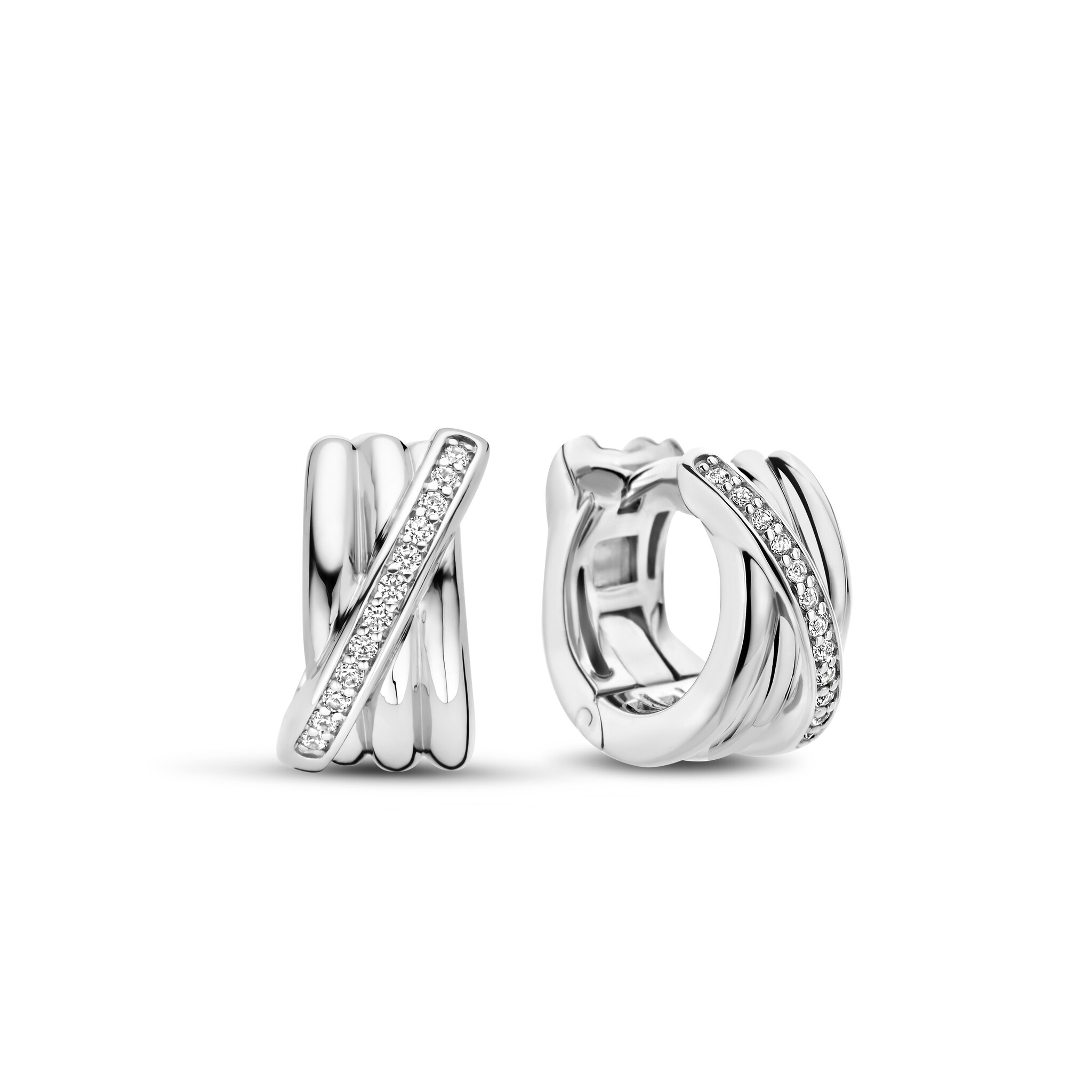 TI SENTO MILANO 7960ZI Zilver gerhodineerde klapcreolen, 3-baans, schuine lijn zirconia's