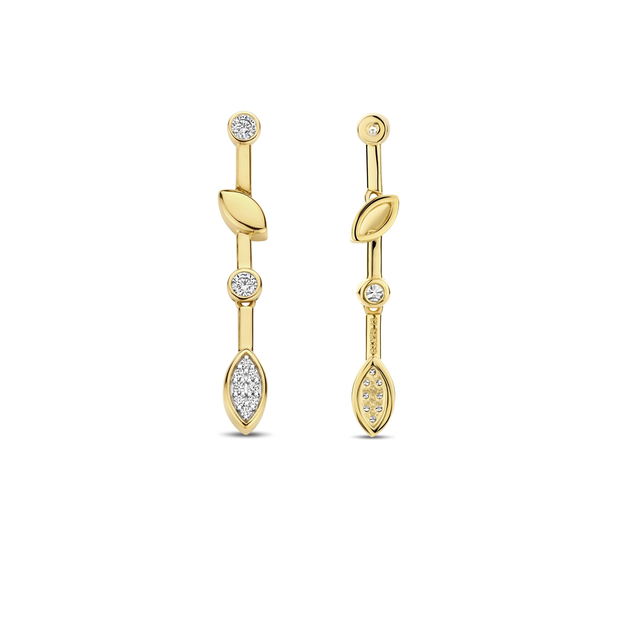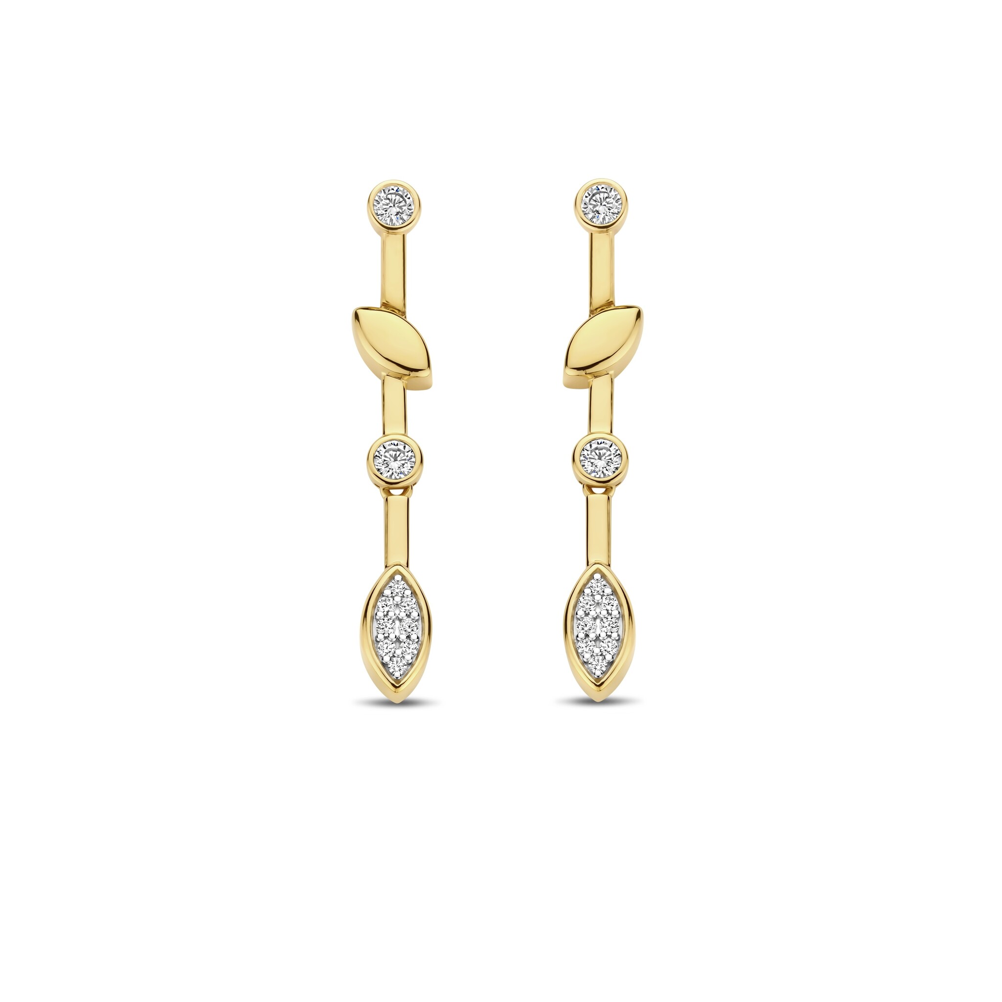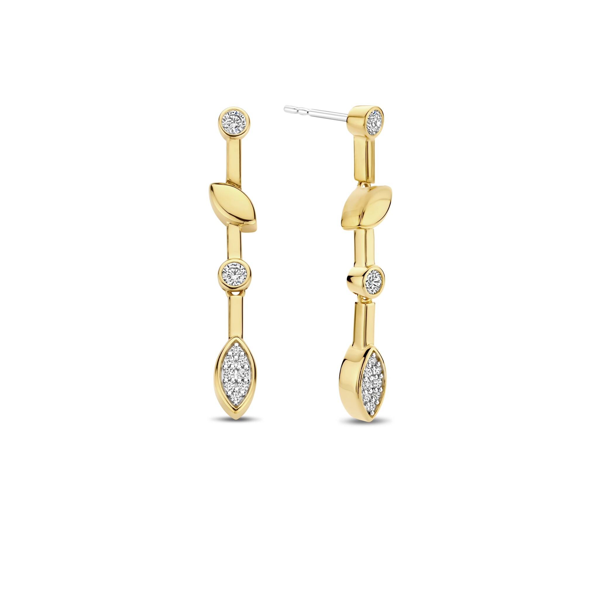 TI SENTO MILANO 7988ZY Zilver vergulde oorknoppen met lange hanger, druppel- en bladvormen met zirconia's