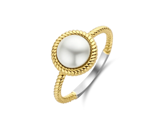 TI SENTO MILANO 12295YP Zilver vergulde ring met witte parel.