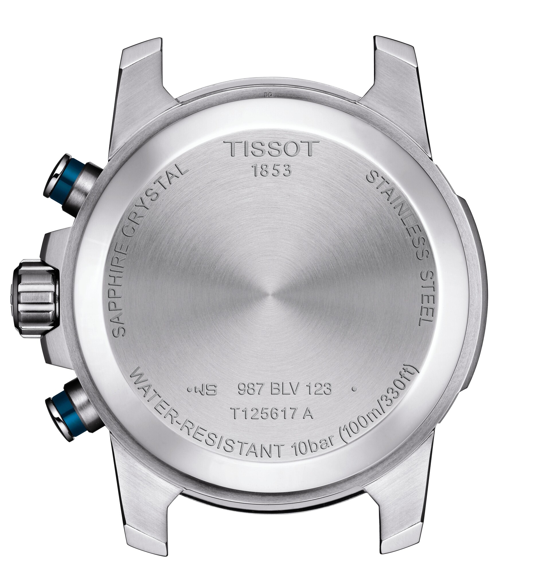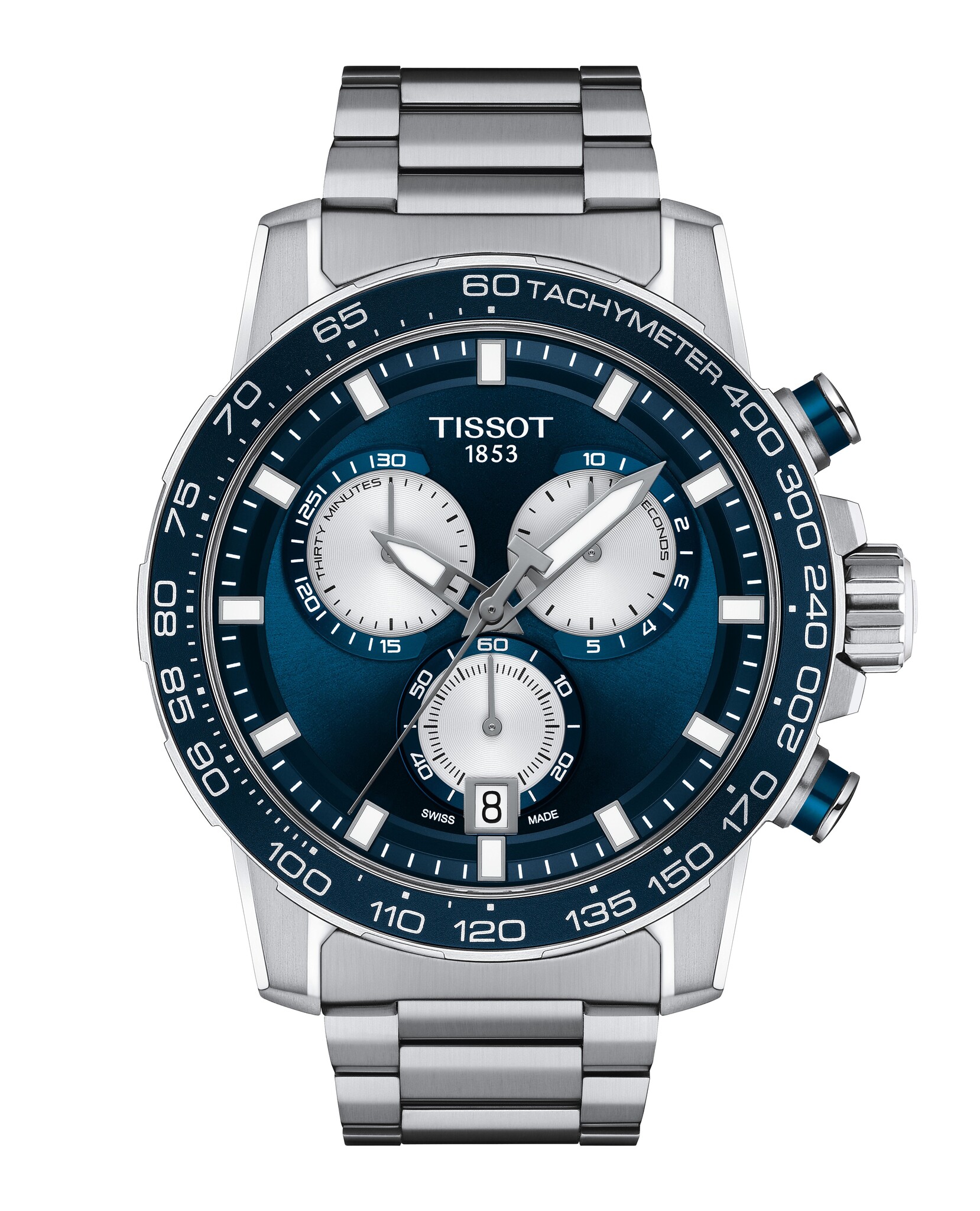 Tissot Supersport Chrono T125.617.11.041.00 / 45.5mm, staal/staal, quartz chronograaf, blauwe wijzerplaat, datum, saffierglas, 10ATM.