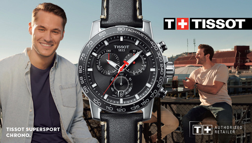 De Tissot Supersport Chrono Collectie is perfect voor de moderne man die zijn horloge in het dagelijks leven, op kantoor en bij sportevenementen wil dragen. De strakke lijnen in combinatie met de indrukwekkende 45,5 mm kast geven de Tissot Supersport Chrono een sterke persoonlijkheid. De grote kroon, die zorgt voor een betere grip, heeft een extra kroonbescherming. De forse indices met SuperLuminova®-coating en de asymmetrische applicaties op de wijzerplaat zorgen voor een krachtig 3D-effect, een dynamische uitstraling en zorgen voor een ideale leesbaarheid in het donker. Daarnaast is deze collectie verkrijgbaar een compleet assortiment horlogebandjes, van stalen banden tot leren banden met sierstiksels. Alle modellen van de Tissot Chrono Supersport hebben een solide 316L roestvrijstalen kast, krasbestendig saffierglas en zijn waterbestendig tot een druk van 10 bar (100 meter / 330 voet). Deze versie van de Tissot Supersport Chrono heeft een Swiss-Made quartz uurwerk en een roestvrijstalen kast. De zwarte wijzerplaat met geelgouden accenten is qua kleur afgestemd op de massieve 316L roestvrijstalen armband met veiligheidsvouwsluiting.