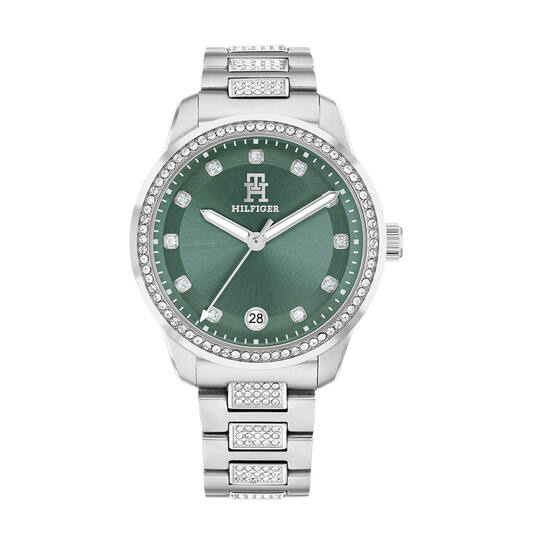Tommy Hilfiger horloge TH85 CRYSTALS - Ø36 TH 1782759, staal/staal, quartz, groene wijzerplaat, datum, 5ATM
