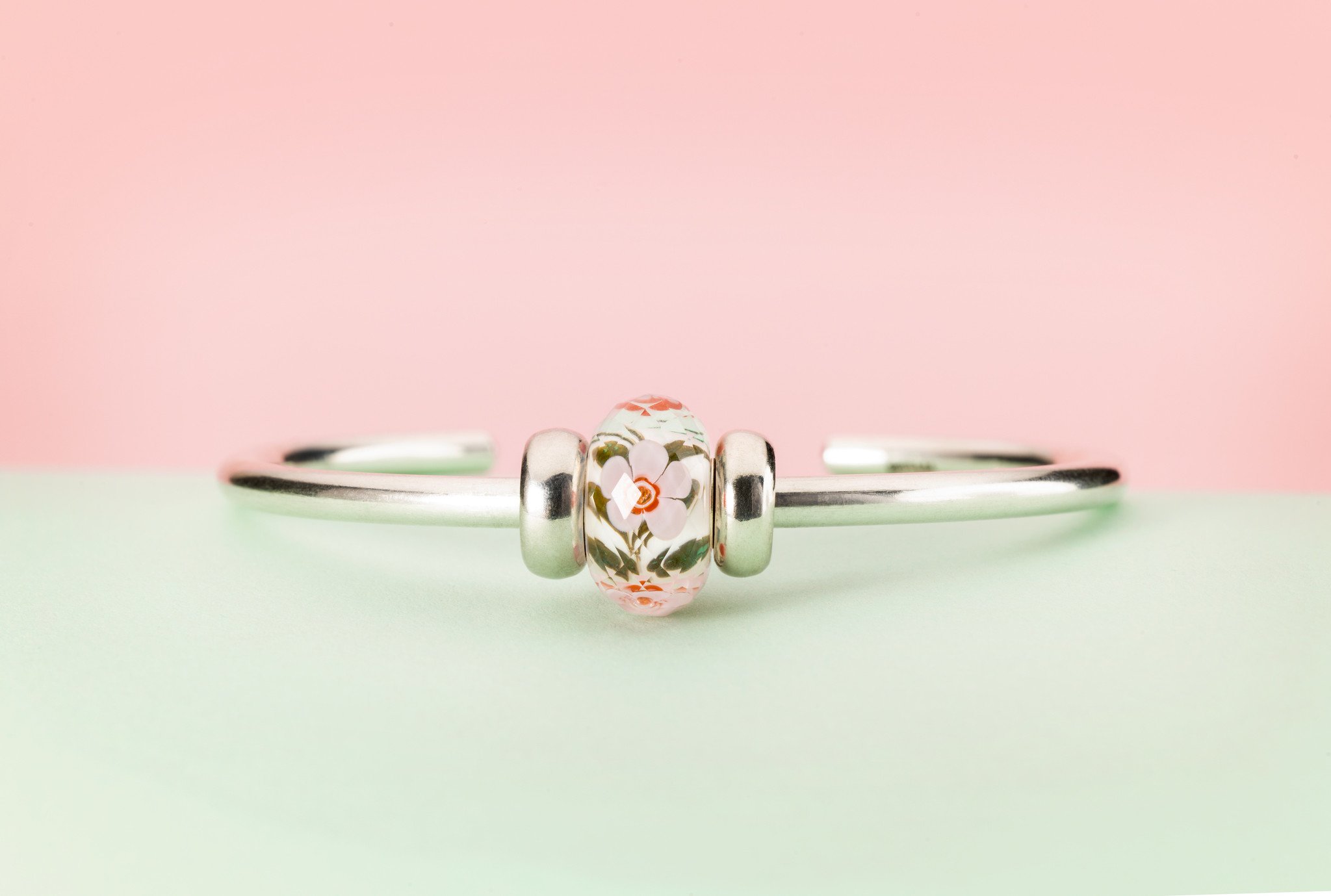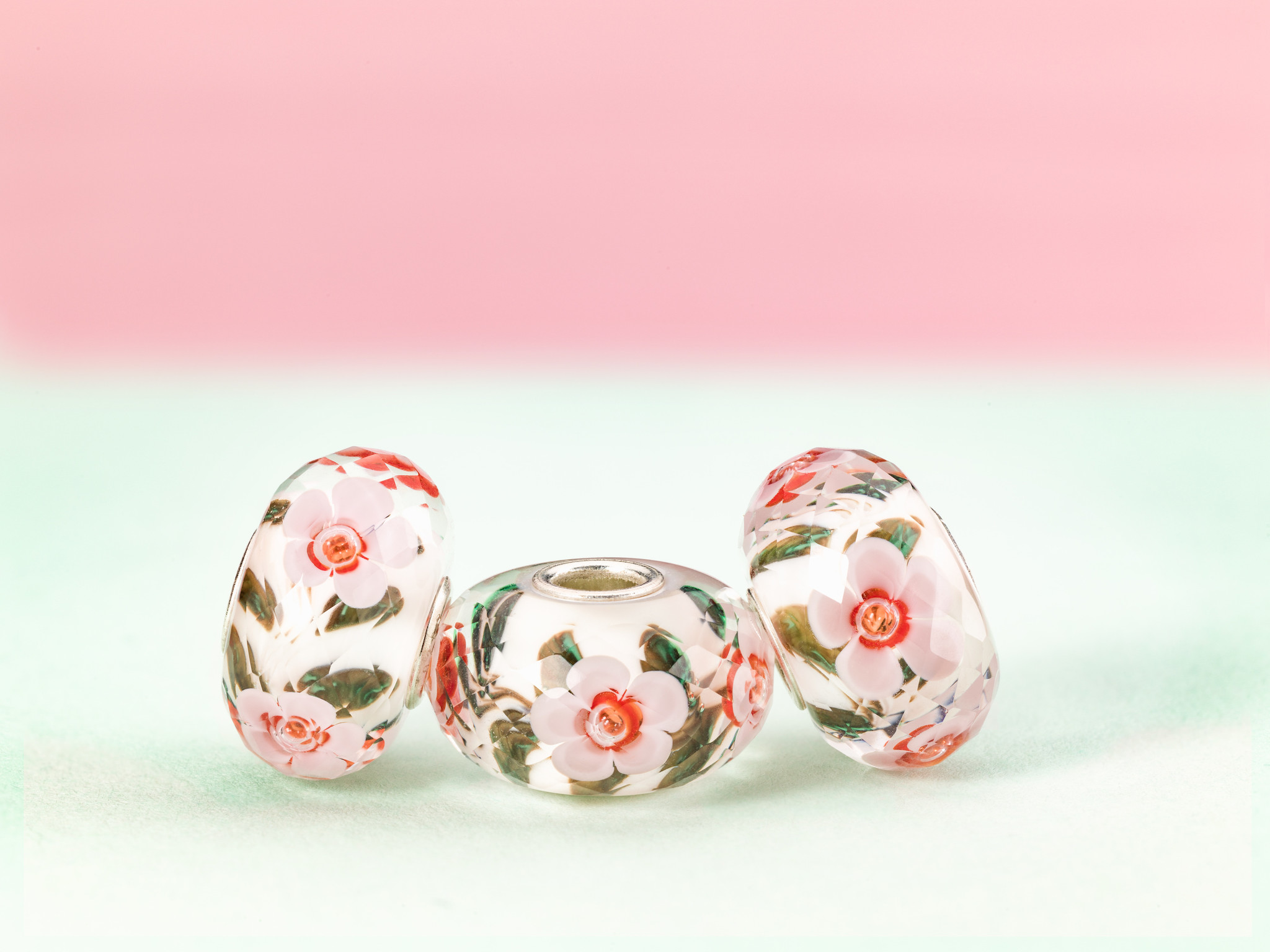 De nieuwe Moederdagkraal voor 2022. Een prachtige Sepcial Edition gefacetteerde glaskraal met fleurige details.