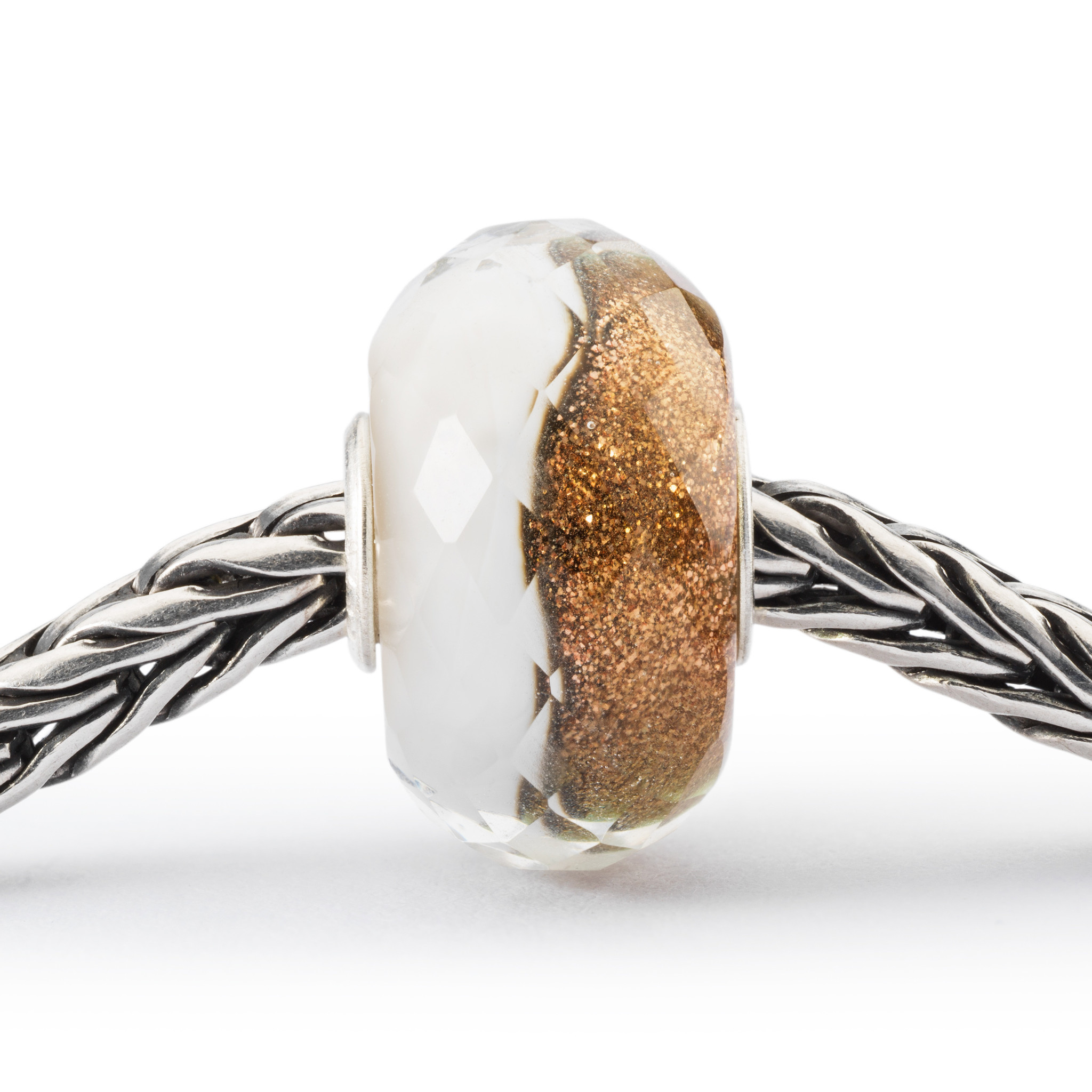 Je geeft me het gevoel dat ik op wolken loop. Deze in facetten geslepen glazen kraal heeft sprankelende aardetinten, omringd door vers gevallen sneeuw.