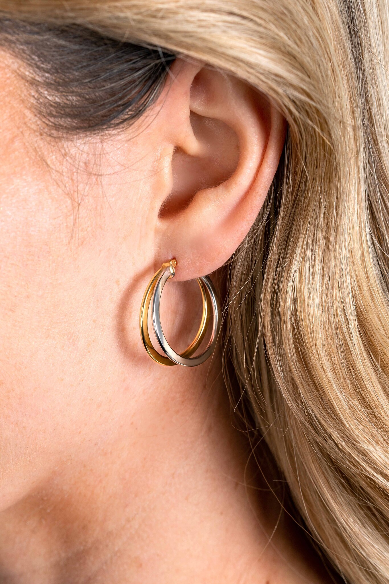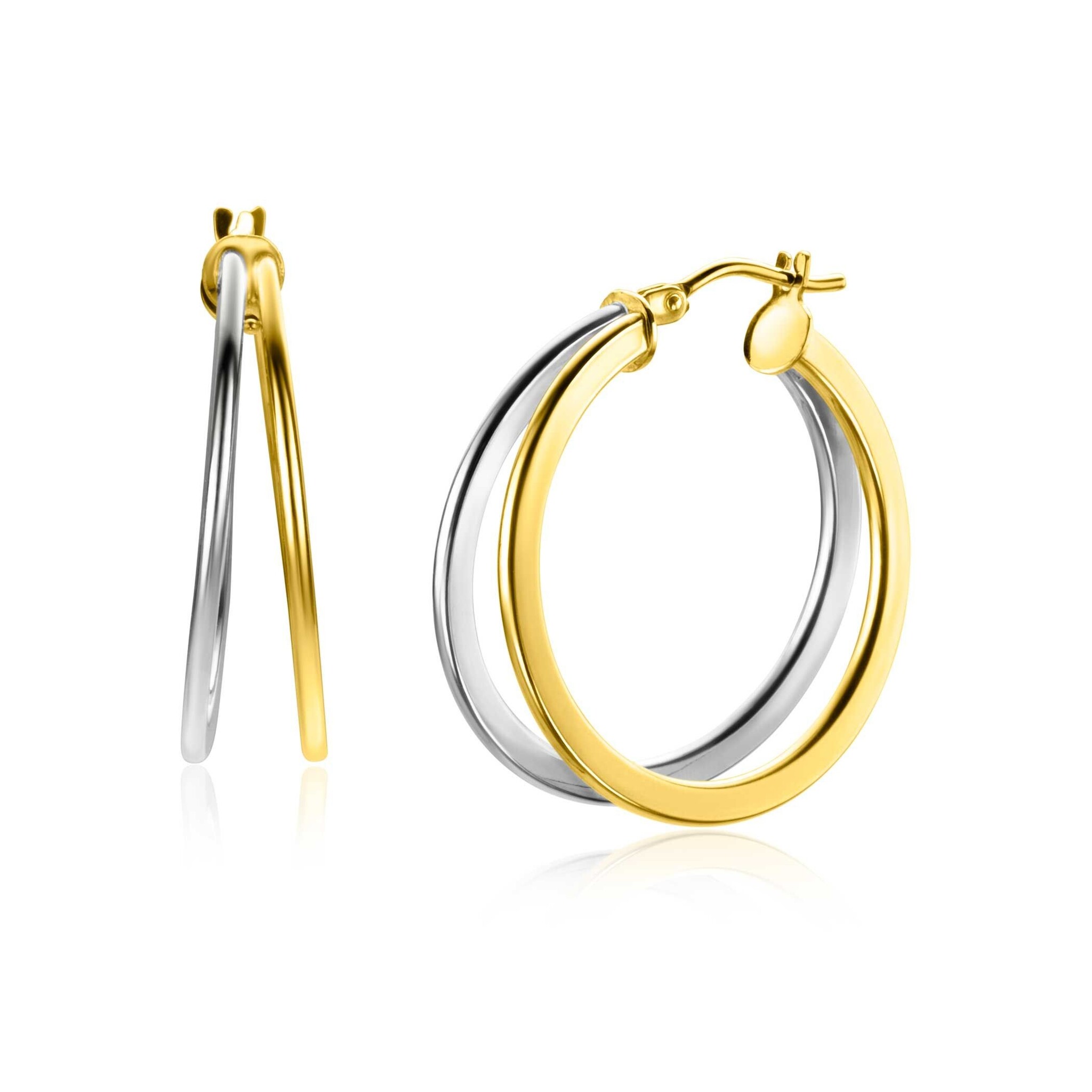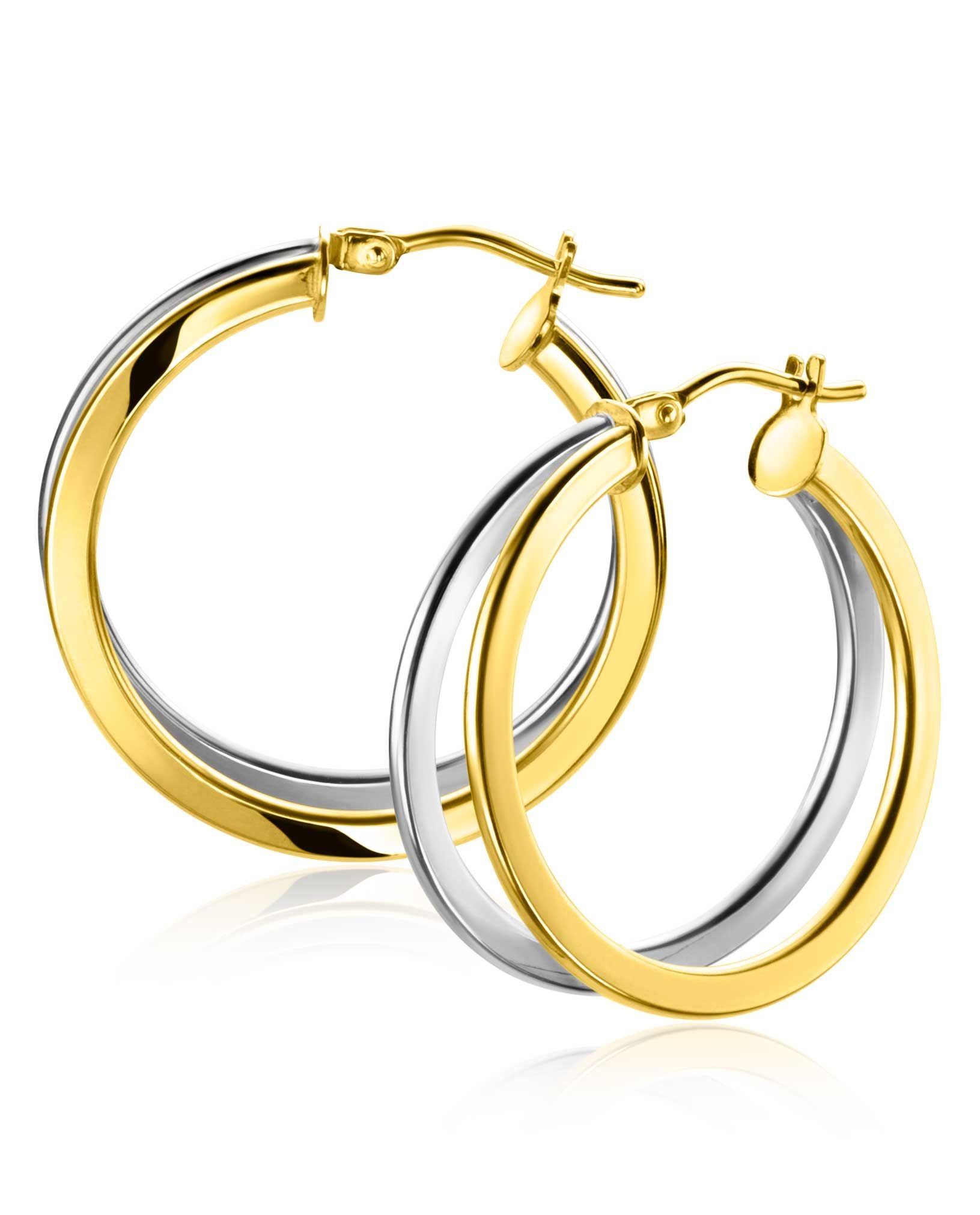 ZINZI Gold 14 karaat gouden bicolor oorringen 25mm met een trendy dubbele buis. Geeft een mooie multi-look uitstraling aan het oor. Voorzien van een handige bovensluiting. Vervaardigd van geheel 14 karaat goud (585).